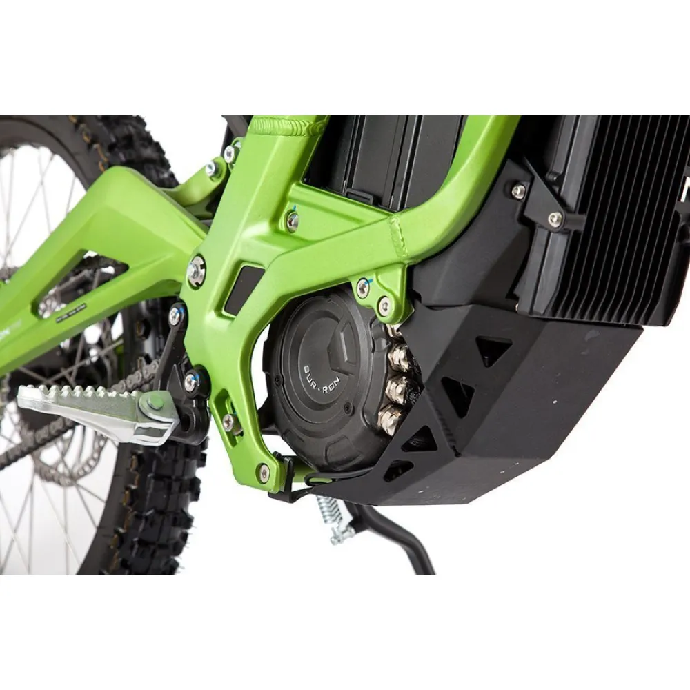 Электропитбайк SUR RON X в зелёной расцветке создан для быстрой езды по дорогам. Он спокойно проедет по грунтовой дороге, не застрянет в песке и ему не страшны горки.