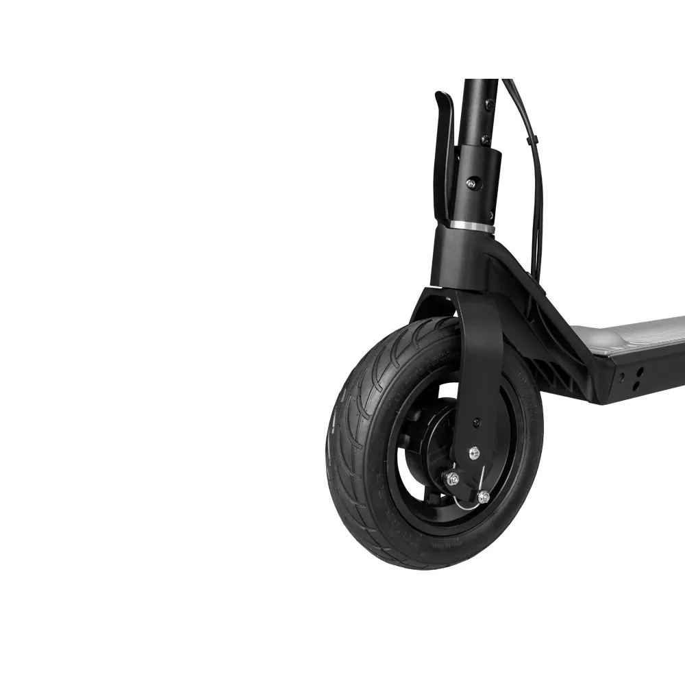 В NEOLINE T27 встроен бортовой компьютер, выводящий на дисплей полезную информацию. Электросамокат оснащён тремя типами тормозных систем: передним барабанного типа, задним ручным дисковым и электронным.  Широкие бескамерные колёса обладают отличным протектором, который даёт надёжное сцепление с дорогой, эффективно гасят вибрации и очень просты в ремонте – они отлично подойдут для любых видов покрытий. На самокате спереди имеется фонарь и ходовые огни сзади.