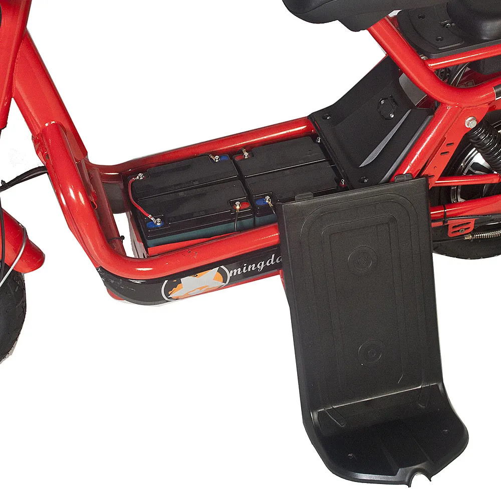 Сидение скутера выполнено из мягкой, прочной и долговечной эко-кожи и имеет прямую спинку для удобной посадки пользователя.  На руле установлены анатомические ручки тормоза, кнопки управления светом и переключением скоростей и ручка газа, сделанная из нескользящего материала. В комплекте к скутеру идут зеркала заднего вида, сидение с прямой спинкой для пассажира и корзинка для вещей, выдерживающая до 30 кг.
