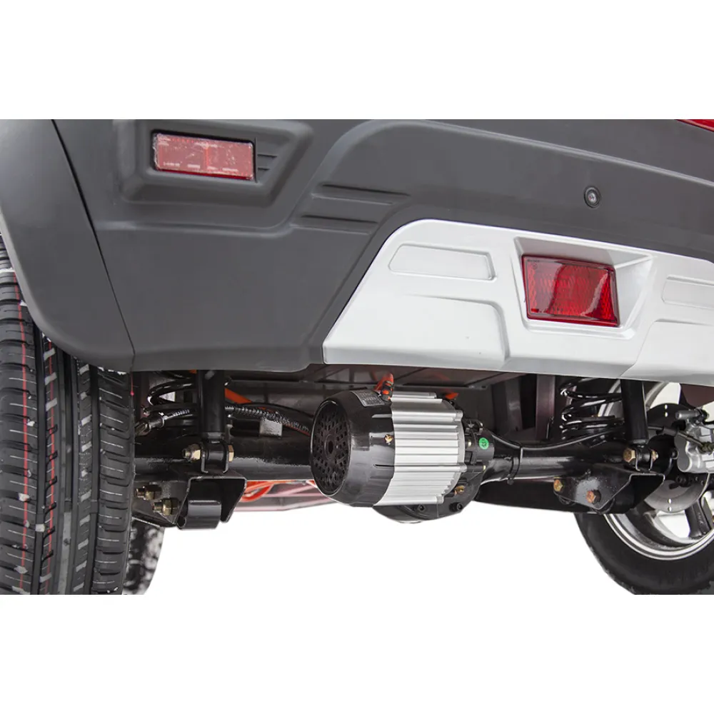 Максимальная скорость 20-25 км/час легко достигается благодаря мощности двигателя 1000 Вт. Улучшенная тормозная система позволяет быстро остановиться в экстренных ситуациях. Модель компактна, пользователю не стоит беспокоиться о поиске места для парковки. Улучшенные показатели грузоподъемности техники позволяют доставлять грузы массой 200 кг. Широкие колеса с мощными протекторами придают транспортному средству повышенную проходимость. Яркие светодиодные фары хорошо освещают дорогу в темное время суток.