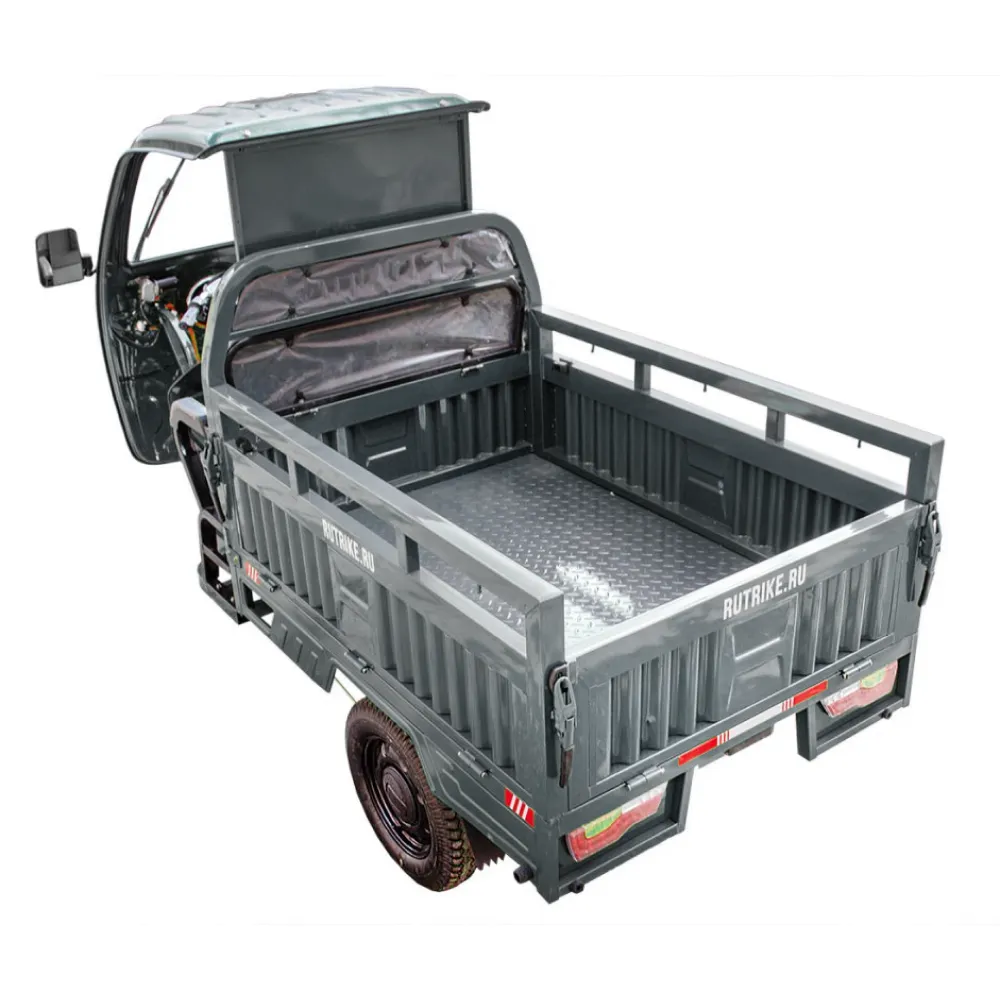 Грузовой электротрицикл Rutrike Гермес 1500 60V1200W серого цвета - это надежный и эффективный транспортный средство для перевозки грузов. Его мощность, грузоподъемность и безопасные тормоза делают его идеальным решением для различных бизнес-потребностей.