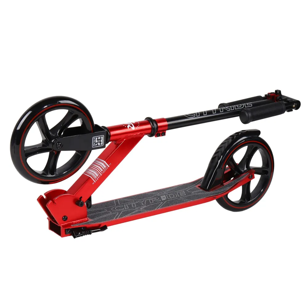 Городской самокат City Ride 200 красный в модном дизайне стал хитом продаж сезона 2022. Модель нравится благодаря небольшому весу, минималистичной складывающейся конструкции. При весе 3,6 кг максимальная грузоподъемность тс составляет 100 кг. Производитель указывается, пользоваться техникой можно начинающим райдерам начиная с 8-летнего возраста.